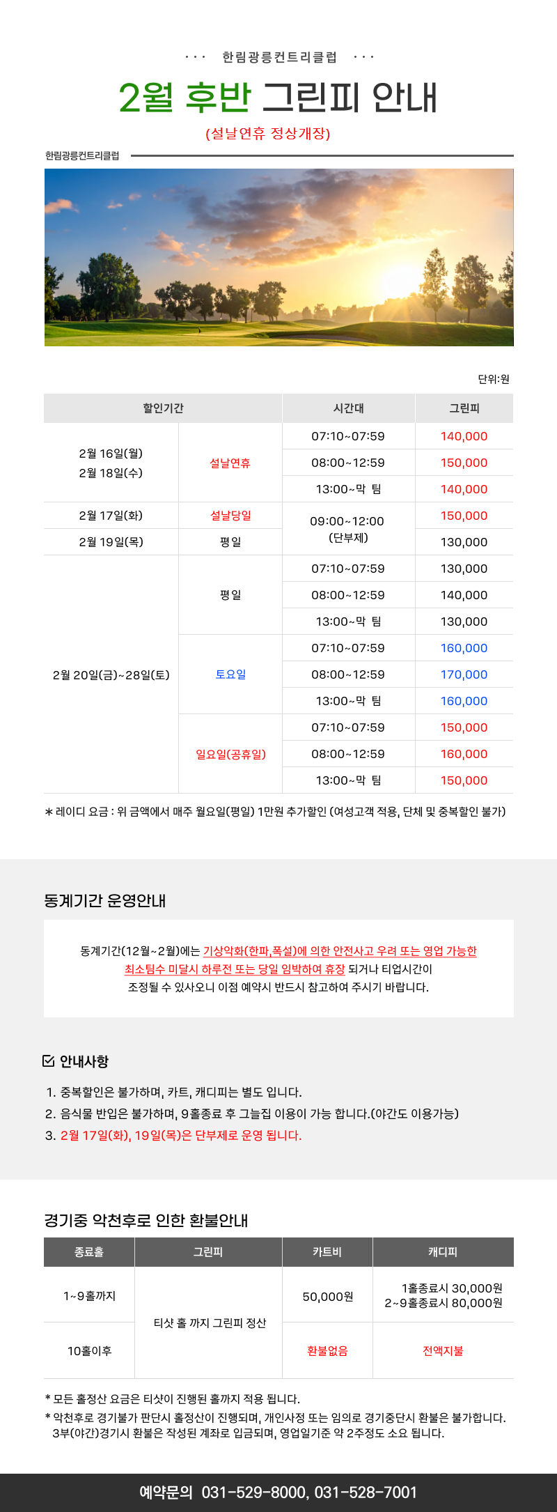 [2월전반] 요금 및 동계운영 안내
