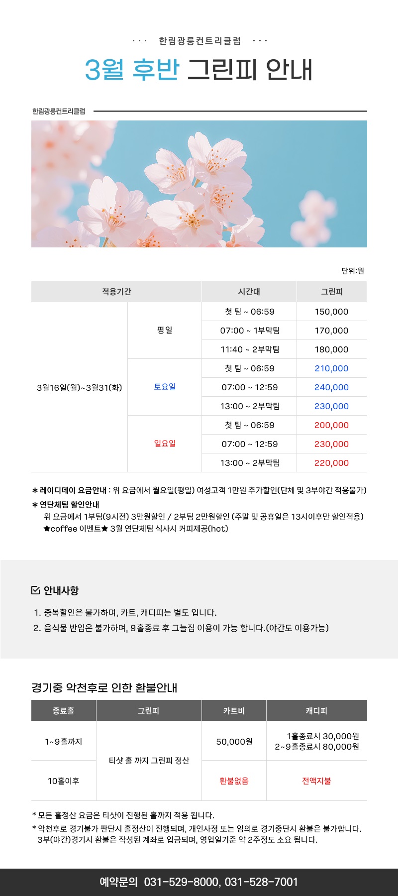 [3월후반] 요금 및 운영안내